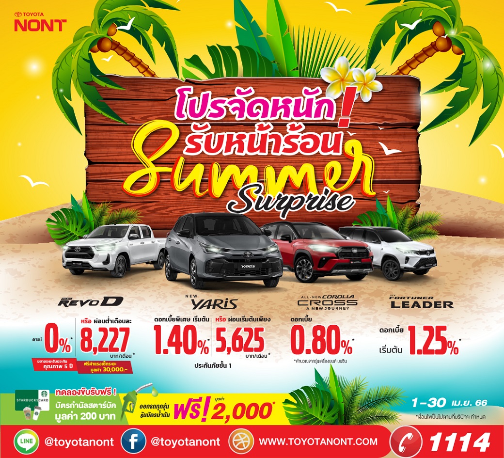 Summer Surprise #โปรจัดหนักรับหน้าร้อน ออกรถทุกรุ่นวันนี้ รับฟรี! บัตรเติมน้ำมันมูลค่า 2,000 บาท*